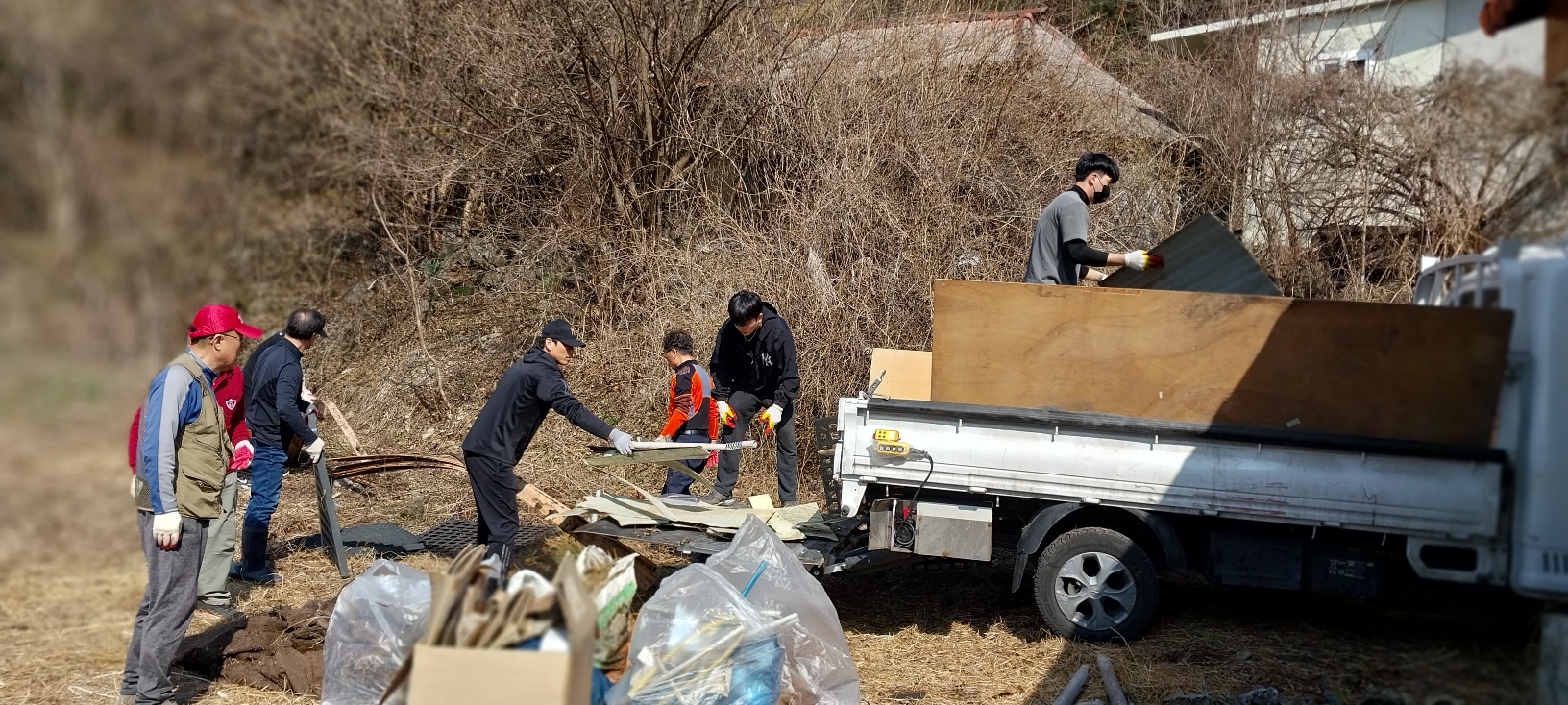 3. 쓰지않는 물건들과 쓰레기를 차량 두대로. 90만을 주고 치웠습니다. 춘천교회에서 오셔서 함께해 주었습니다. 감사합니다.