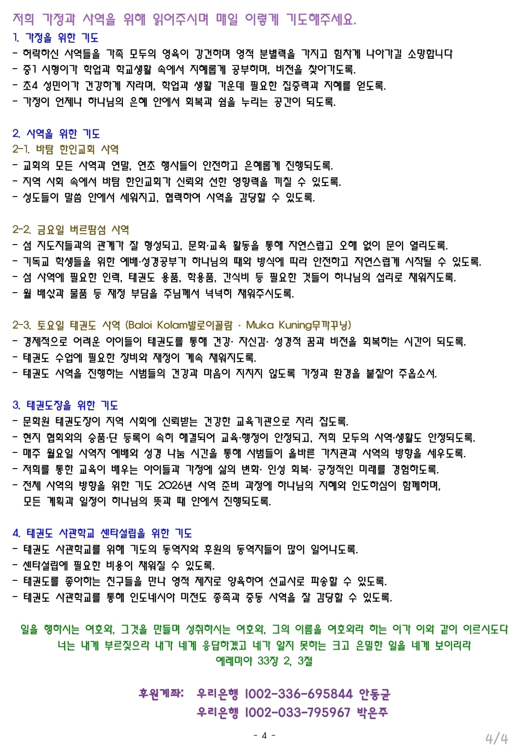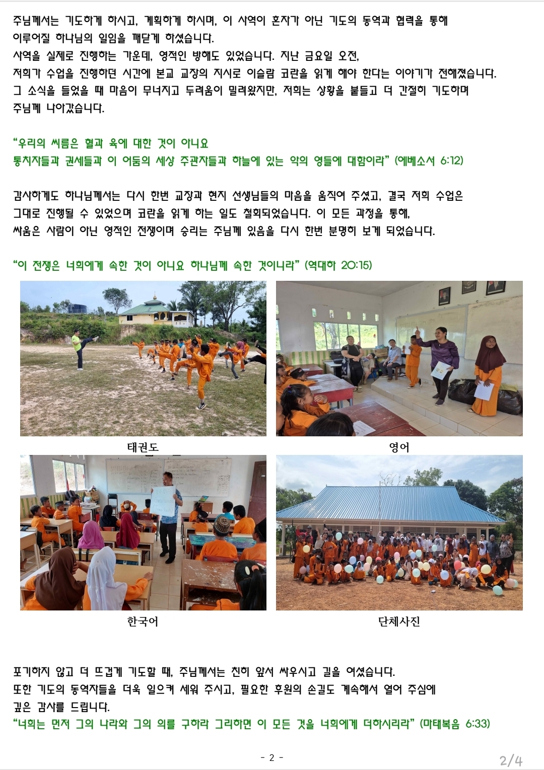 휴식하는 기간동안 4월에 있을 한인교회 수련회 준비 및 태권도 사범들 성경공부 진행 그리고 5월에 있을 한국문화 행사를 준비하게 됩니다.