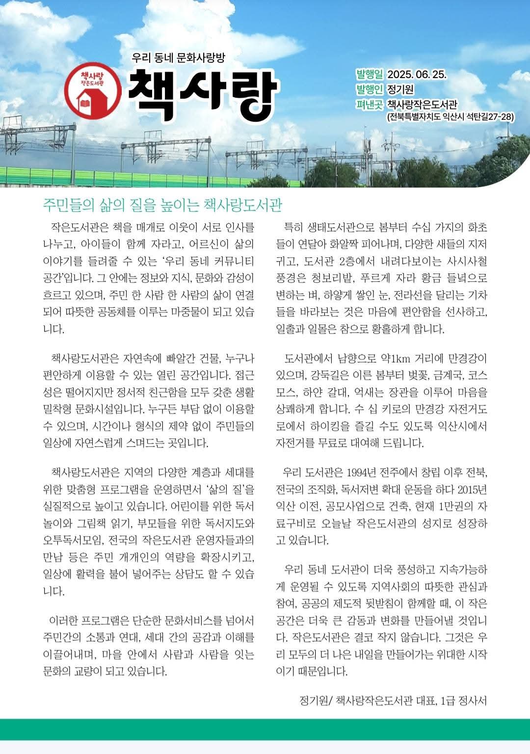 주민의 삶의 질을 높이는 책사랑도서관