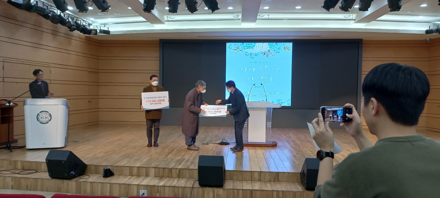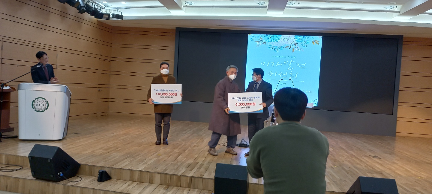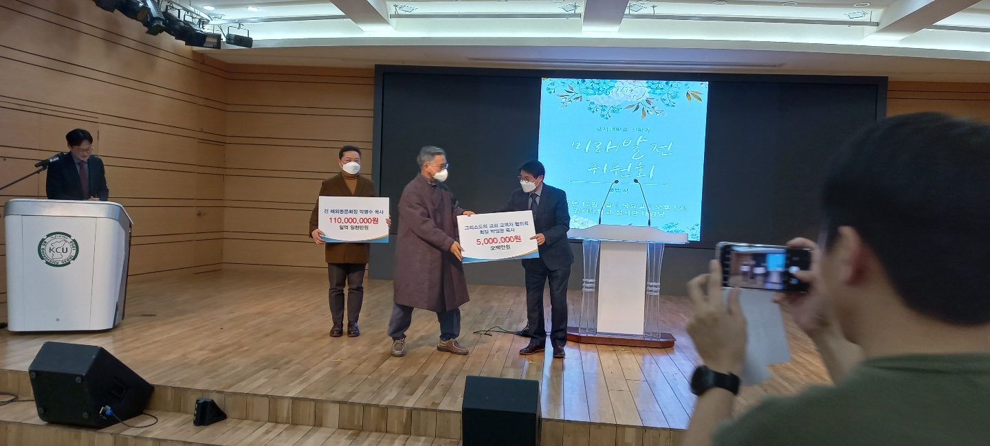주님의 이름으로 문안드립니다. 추운 날씨에 건강 조심하시기 바랍니다. 올 해, 교역자협의회에서는 신학생을 위한 선교주일을 지켰습니다. 목회자들과 교회들의 관심과 기도, 그리고 후원에 감사드립니다. 모두의 협력으로 오백만원(5,000,000원)을 마련할 수 있었습니다. 그래서 지난 12월 1일 “신학미래발전위원회”를 통해서 오백만원을 전달했습니다. 다시 한 번 모든 분들과 교회에게 깊은 감사의 말씀드립니다. 앞으로도 계속 교역자협의회를 위해 기도해 주십시오. 감사합니다. 그리스도의교회 교역자협의회 회장 박일광목사 총무 전승철목사 올림. |